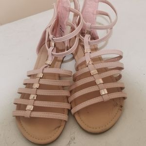 Pink sandals that zip up in the back. Size 9 but fits more like an 8.
