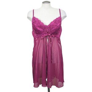 Pink Baby Doll Plus Size 3X Nightie Open Front Sheer Chemise Lace Embellishments