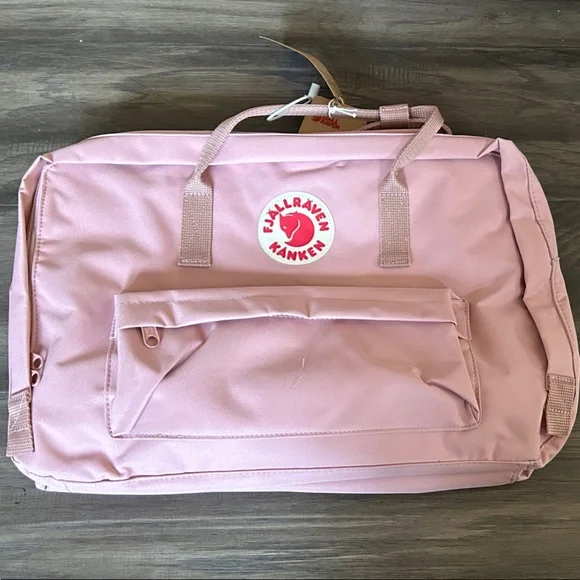 Stylish pink backpack by Fjällräven. Features a spacious main compartment and front pocket.