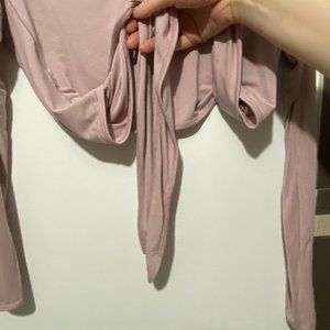 Can be worn two ways with tie front back. Thumb holes on sleeves, stretchy and breathable material.