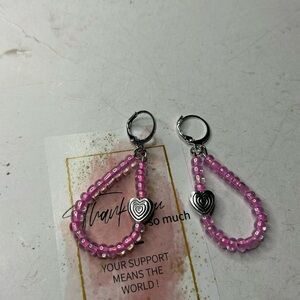 Pink Beaded Heart Earrings