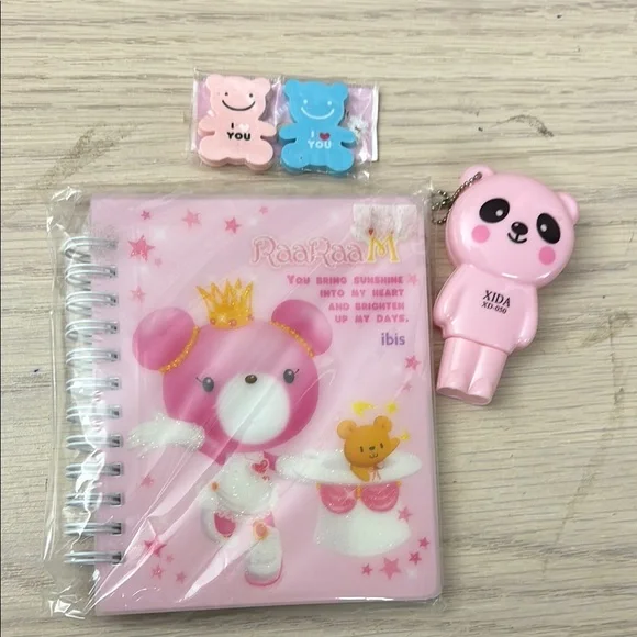 Pink Bear Notebook and Keychain Set