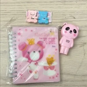 Delight your child with the Pink Bear Notebook and Keychain Set. This adorable set features a pink bear-themed notebook and a matching keychain, perfect for creative play and note-taking. The vibrant pink color adds a fun touch to any child's collection.