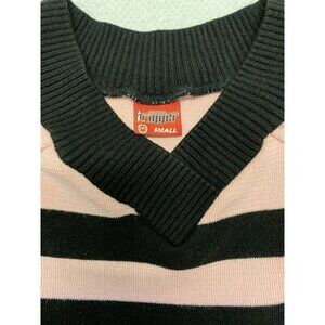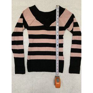 Pink Black Striped V-neck Y2K Pullover Fitted Sweater Small
