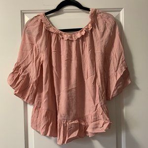 Pink flowy blouse. Can be worn on or off the shoulder! Never worn - in great condition!