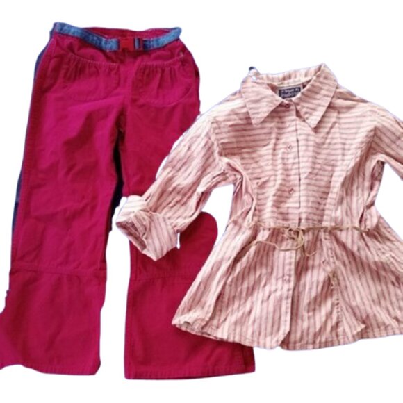 Pink Blouse and Red Cotton Pants Girl Size 7 & 8 ---
