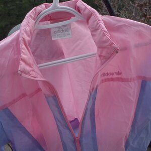 Adidas wind beaker women's coat,made in Thailand size medium,pit to pit is 21" inches across.In very good condition,has a roll up hood that hides in neck zipper.pockets and zip up.