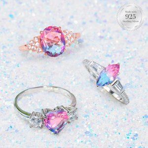 Beautiful pink, blue and purple tourmaline "ombre" Gemstone heart ring from Charmed Aroma. Made with solid 925 Sterling Silver. I collected much of these at the time as I was a big fan of their color gemstone rings. I believe this stone was the 'Cotton Candy' ring collection.