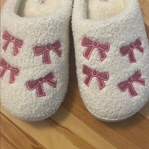Cute pink bow slippers from Willow & Ruby in a size Large (9/10 women’s). They were worn slightly only around the home for one winter and then put away for the time being.