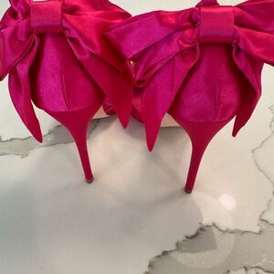 Step out in style with these vibrant pink heels featuring an elegant bow design. Perfect for adding a pop of color to any outfit.