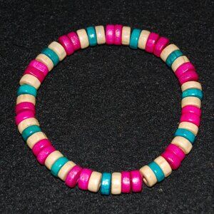 Pink Bracelet,Wood Bracelet,Pink Surfer Bracelet,Pink Wooden Bracelet