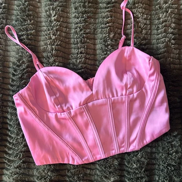 Stylish pink bustier top with adjustable straps. Perfect for a chic look. Size XS.