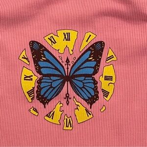 Pink Butterfly Graphic Design Fairy Core Beachy Euro Summer Tank Top Small