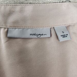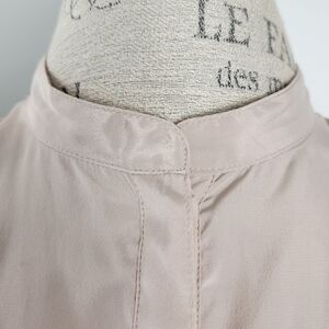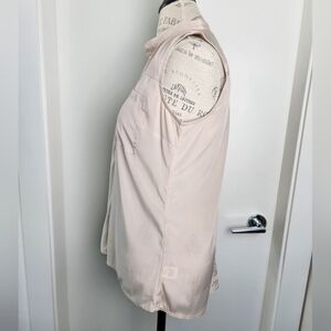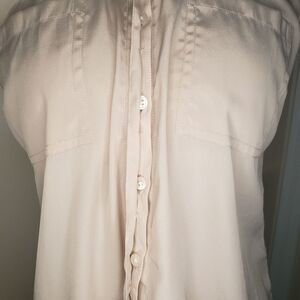 Pale Blush Pink High Mock Vneck hidden Buttonup Sleeveless Blouse with front Chest Pockets, by HALOGEN.