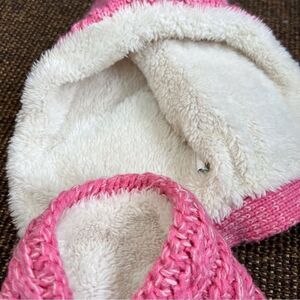 Pink Cable Knit Fleece Lined Toddler Gnome Winter Hat Scarf Set