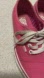 Size 6.5 Ladies pink canvas Vans sneakers. Super cute and bright these cuties are in great condition except for the left shoe is more faded than the right. There is also a very small dark stain on the top of the left shoe. Hardly noticeable.