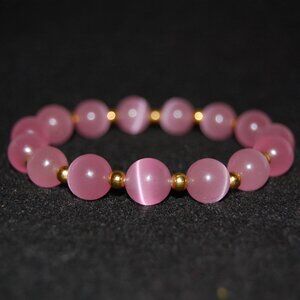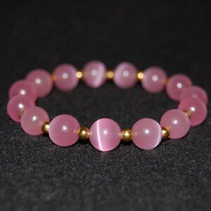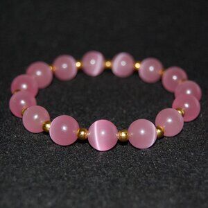 Pink Cat Eye Bracelet,Pink Bracelet,10mm Pink Cat Beaded Bracelet,Special,Lovely