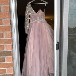 Turn heads with this stunning blush pink Cat Couture gown.