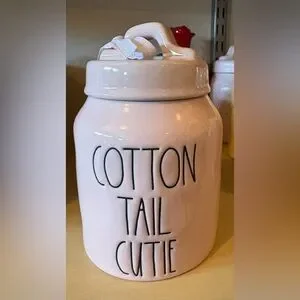 Brand New Rae Dunn Pink Cotton Tail Cutie Baby Canister