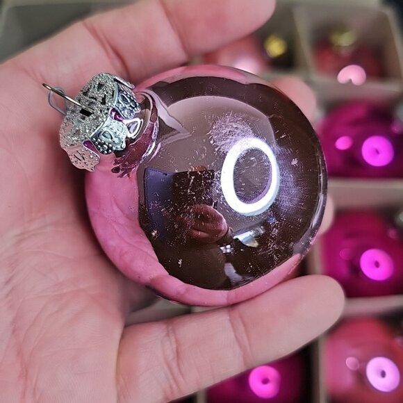 Pink Christmas Baubles 16pcs Various Sizes Vintage Germany Poland Ornaments