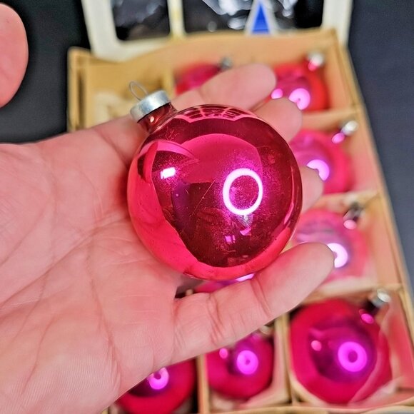 12 various pink ornaments from different countries. Listed as Germany but will also likely be from Poland and USA.