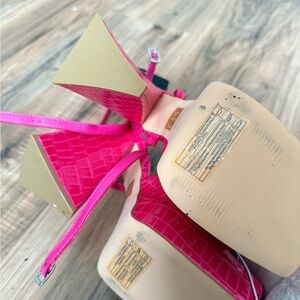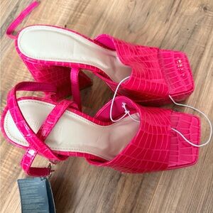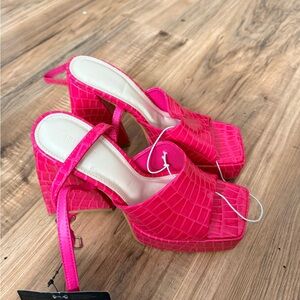 Step out in style with these vibrant pink croc-embossed platform sandals. Perfect for adding a pop of color to any outfit.