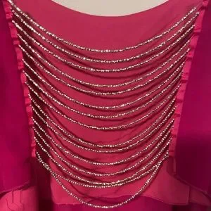 Pink Crop Top with gold bead straps across the back. Worn twice, great condition! Size: medium
