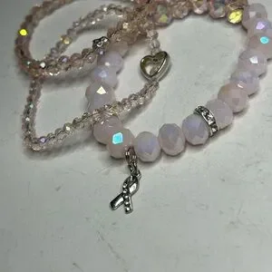 Light pink faceted crystals with ribbon charm. Represents love, compassion, and support.
