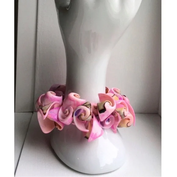 Pink Curly Conch Shell Stretch Bracelet