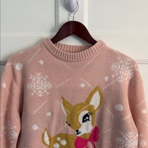 Stay cozy and stylish with this charming pink sweater featuring an adorable deer pattern. Perfect for adding a touch of whimsy to your wardrobe. No Tag, pit to pit approximately 23 inches (fits like a L/XL) and 26 inches in length.