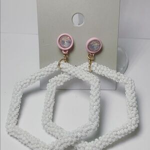 Fashion Jewellery - Pink Diamond dangling hexagon BP earrings