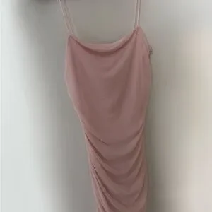 This elegant pink draped dress is perfect for any occasion. It has little sparkles all over it. Never worn. Fits size Xs.