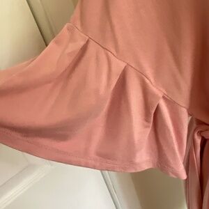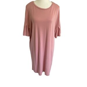 Pink Dusty Rose Soft Jersey Stretch Ruffled drop sleeve midi dress. Sz M