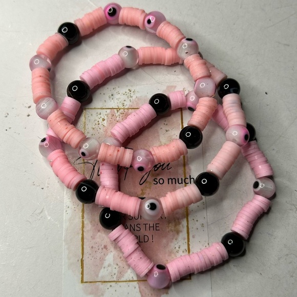 Handmade pink evil eye bead bracelets for protection & positive energy. Stretchable 16/17cm. Perfect gift for birthdays or any occasion.
