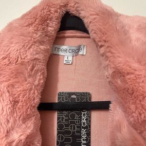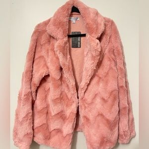 Never worn before. Pink Fur Jacket. Perfect for Fall or early winter. Size L with a bit of stretch