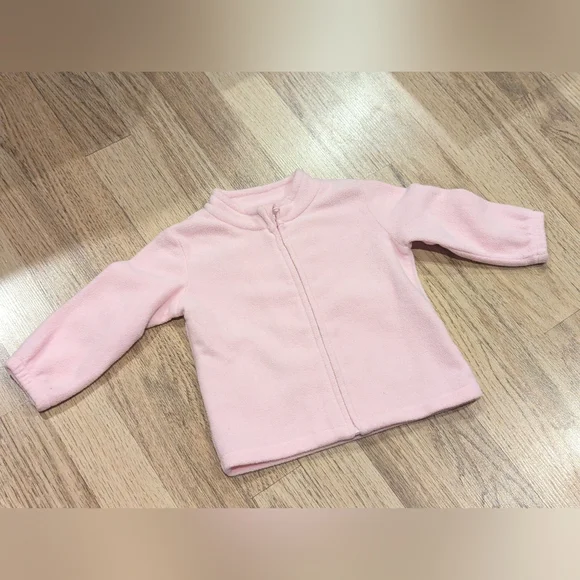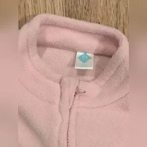 Soft pink fleece baby jacket with a front zipper. Cozy and warm for little ones. French brand Tex