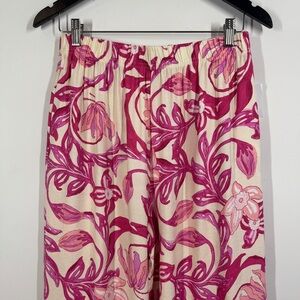 Pink Floral Wide Leg Pants M/L Linen Blend Resort Boho Tencel Lightweight