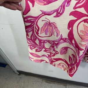 Pink Floral Cotton Linen Blend Resort Wear Boho Pants Lightweight Size M/L