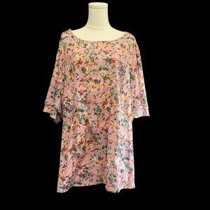 Pink Floral Top w/ Tiered Flutter Sleeve