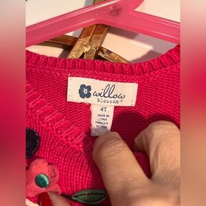 Charming pink dress with floral embroidery. Features long sleeves and front pockets.