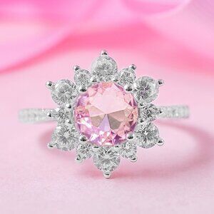 Pink Flower / Snowflake Gemstone Ring, 925 Sterling Silver