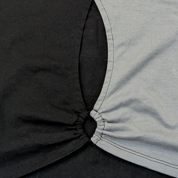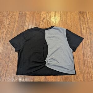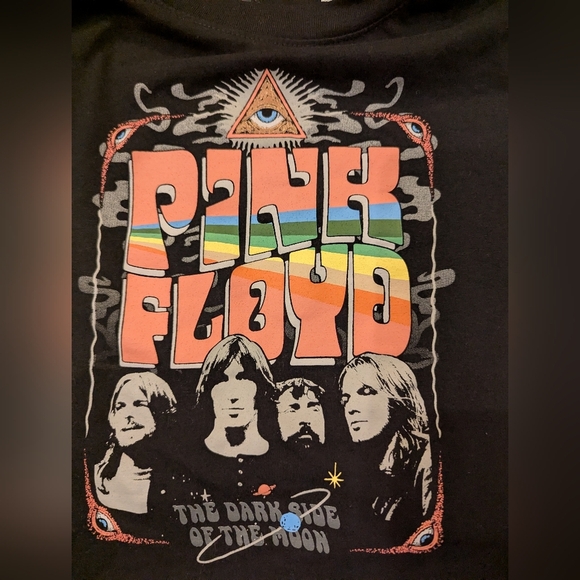 Pink Floyd Black Short Sleeve Crop Tee with Psychedelic Design and peek a boo criss cross back Women's Jr XL fits like M/L. New without tags. washed never worn.