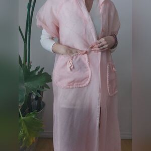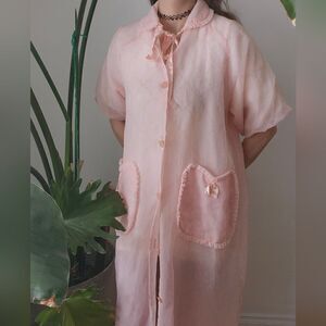 Pink Foral Pint Ruffle Collared Robe House Coat With Pockets 9 Buttons Vday