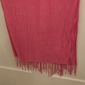 Stylish pink scarf with fringe detail. Perfect for adding a pop of colour.