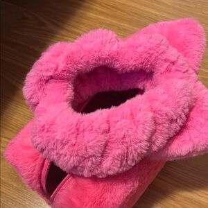 pink fuzzy accessory set is perfect. It includes a plush pouch and a matching headband.