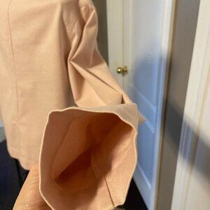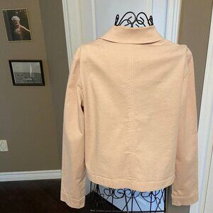 This pink GAP jean jacket is from when the GAP made things so well. Excellent quality. Size M. GUC. There is a little stretch in it. Measurements in pictures.