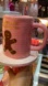 Charming pink mug with a gingerbread design and gold lettering. Perfect for cozy drinks.
