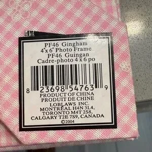 Charming pink gingham photo frame with floral accents. Perfect for adding a touch of elegance to any room.