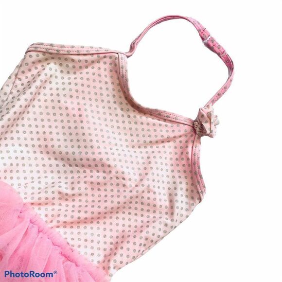Pink Glitter Polkadot Tutu One Piece Swimsuit.