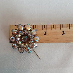 Pink Gold Tone Aurora Borealis Rhinestone Brooch Costume Jewelry